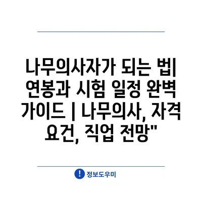 나무의사자가 되는 법| 연봉과 시험 일정 완벽 가이드 | 나무의사, 자격 요건, 직업 전망”