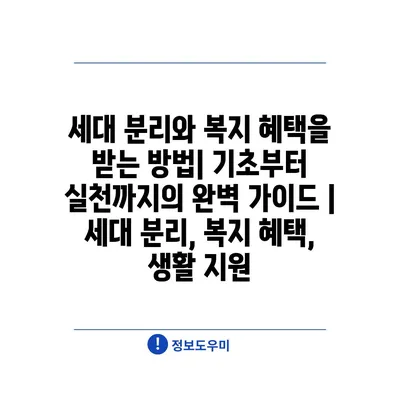 세대 분리와 복지 혜택을 받는 방법| 기초부터 실천까지의 완벽 가이드 | 세대 분리, 복지 혜택, 생활 지원