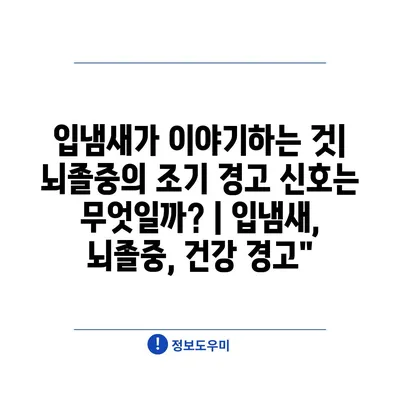 입냄새가 이야기하는 것| 뇌졸중의 조기 경고 신호는 무엇일까? | 입냄새, 뇌졸중, 건강 경고”