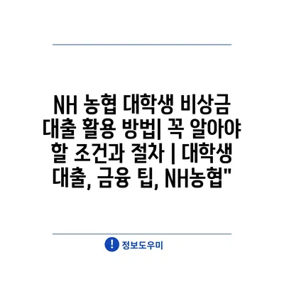 NH 농협 대학생 비상금 대출 활용 방법| 꼭 알아야 할 조건과 절차 | 대학생 대출, 금융 팁, NH농협”