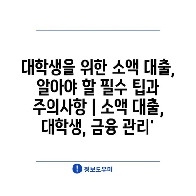 대학생을 위한 소액 대출, 알아야 할 필수 팁과 주의사항 | 소액 대출, 대학생, 금융 관리’
