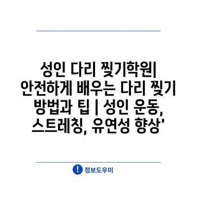 성인 다리 찢기학원| 안전하게 배우는 다리 찢기 방법과 팁 | 성인 운동, 스트레칭, 유연성 향상’