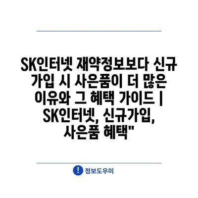 SK인터넷 재약정보보다 신규 가입 시 사은품이 더 많은 이유와 그 혜택 가이드 | SK인터넷, 신규가입, 사은품 혜택”
