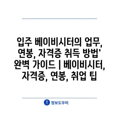 입주 베이비시터의 업무, 연봉, 자격증 취득 방법’ 완벽 가이드 | 베이비시터, 자격증, 연봉, 취업 팁