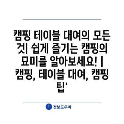 캠핑 테이블 대여의 모든 것| 쉽게 즐기는 캠핑의 묘미를 알아보세요! | 캠핑, 테이블 대여, 캠핑 팁’
