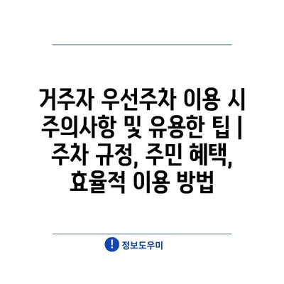 거주자 우선주차 이용 시 주의사항 및 유용한 팁 | 주차 규정, 주민 혜택, 효율적 이용 방법