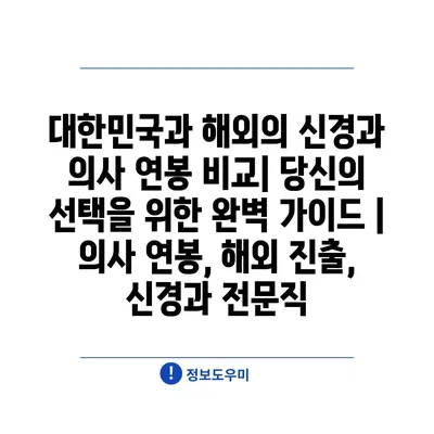 대한민국과 해외의 신경과 의사 연봉 비교| 당신의 선택을 위한 완벽 가이드 | 의사 연봉, 해외 진출, 신경과 전문직