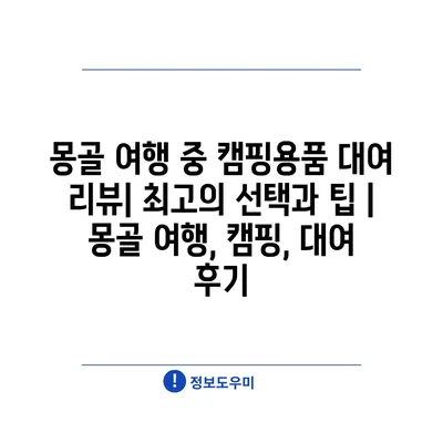 몽골 여행 중 캠핑용품 대여 리뷰| 최고의 선택과 팁 | 몽골 여행, 캠핑, 대여 후기