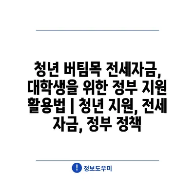 청년 버팀목 전세자금, 대학생을 위한 정부 지원 활용법 | 청년 지원, 전세 자금, 정부 정책