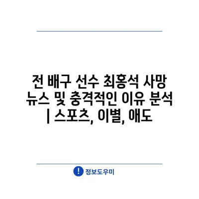 전 배구 선수 최홍석 사망 뉴스 및 충격적인 이유 분석 | 스포츠, 이별, 애도