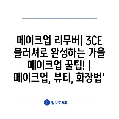 메이크업 리무버| 3CE 블러셔로 완성하는 가을 메이크업 꿀팁! | 메이크업, 뷰티, 화장법’