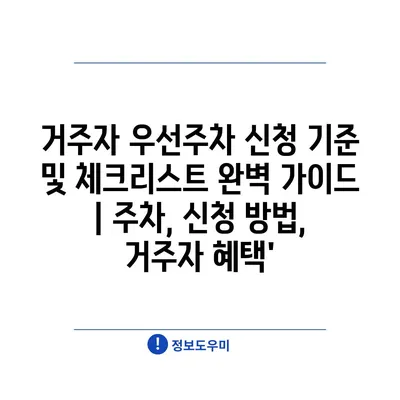 거주자 우선주차 신청 기준 및 체크리스트 완벽 가이드 | 주차, 신청 방법, 거주자 혜택’