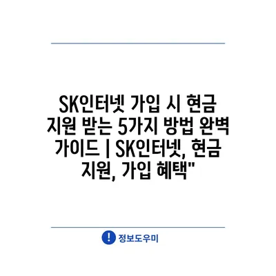 SK인터넷 가입 시 현금 지원 받는 5가지 방법 완벽 가이드 | SK인터넷, 현금 지원, 가입 혜택”