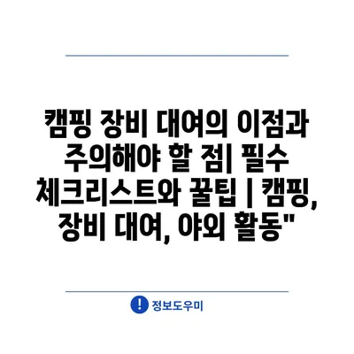 캠핑 장비 대여의 이점과 주의해야 할 점| 필수 체크리스트와 꿀팁 | 캠핑, 장비 대여, 야외 활동”