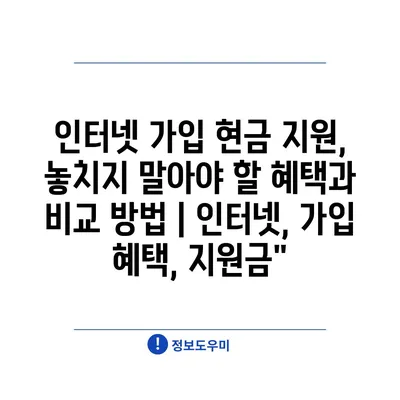 인터넷 가입 현금 지원, 놓치지 말아야 할 혜택과 비교 방법 | 인터넷, 가입 혜택, 지원금”
