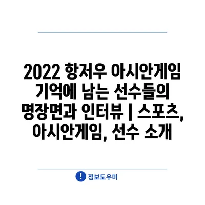 2022 항저우 아시안게임 기억에 남는 선수들의 명장면과 인터뷰 | 스포츠, 아시안게임, 선수 소개