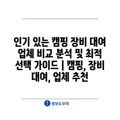 인기 있는 캠핑 장비 대여 업체 비교 분석 및 최적 선택 가이드 | 캠핑, 장비 대여, 업체 추천