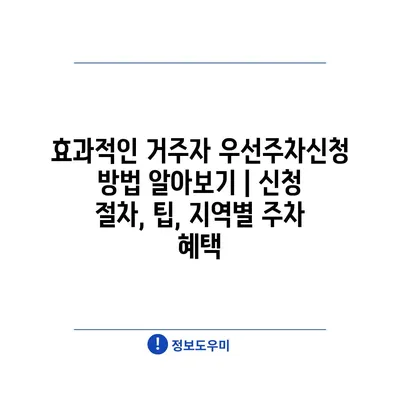 효과적인 거주자 우선주차신청 방법 알아보기 | 신청 절차, 팁, 지역별 주차 혜택