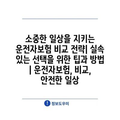 소중한 일상을 지키는 운전자보험 비교 전략| 실속 있는 선택을 위한 팁과 방법 | 운전자보험, 비교, 안전한 일상