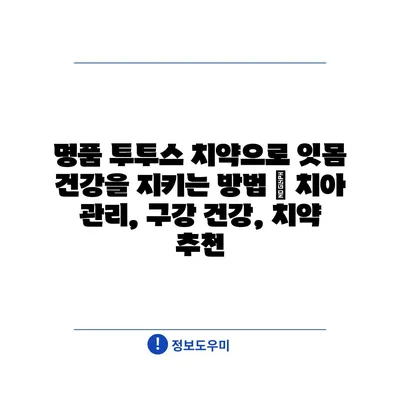 명품 투투스 치약으로 잇몸 건강을 지키는 방법 | 치아 관리, 구강 건강, 치약 추천