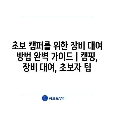 초보 캠퍼를 위한 장비 대여 방법 완벽 가이드 | 캠핑, 장비 대여, 초보자 팁