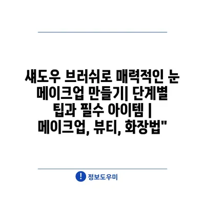섀도우 브러쉬로 매력적인 눈 메이크업 만들기| 단계별 팁과 필수 아이템 | 메이크업, 뷰티, 화장법”