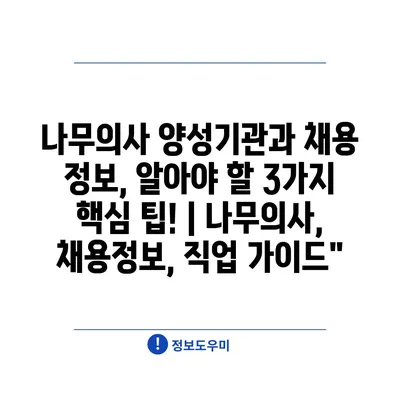 나무의사 양성기관과 채용 정보, 알아야 할 3가지 핵심 팁! | 나무의사, 채용정보, 직업 가이드”